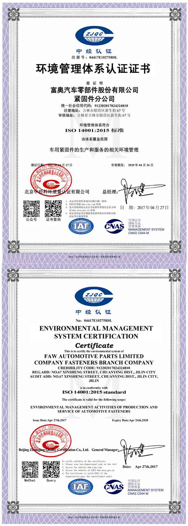 2017环境管理证书